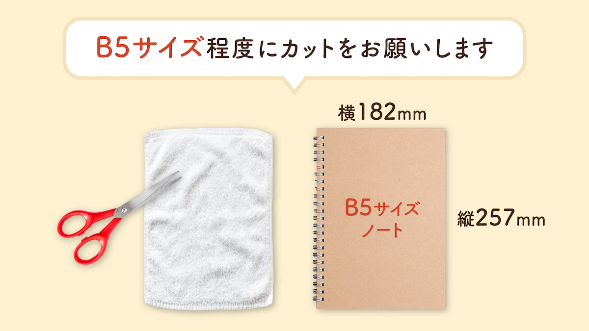 洗って清潔な状態にし、B5サイズ(縦182mm×横257mm)程度にカットをお願いします。