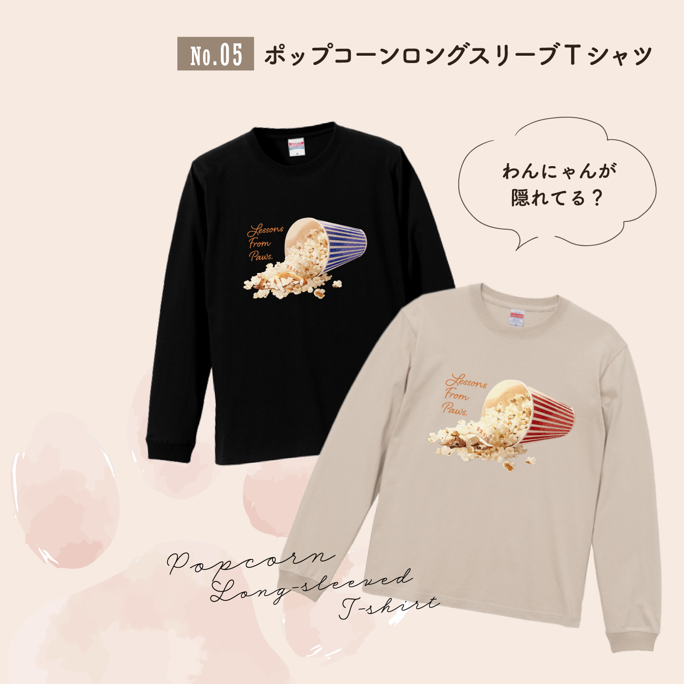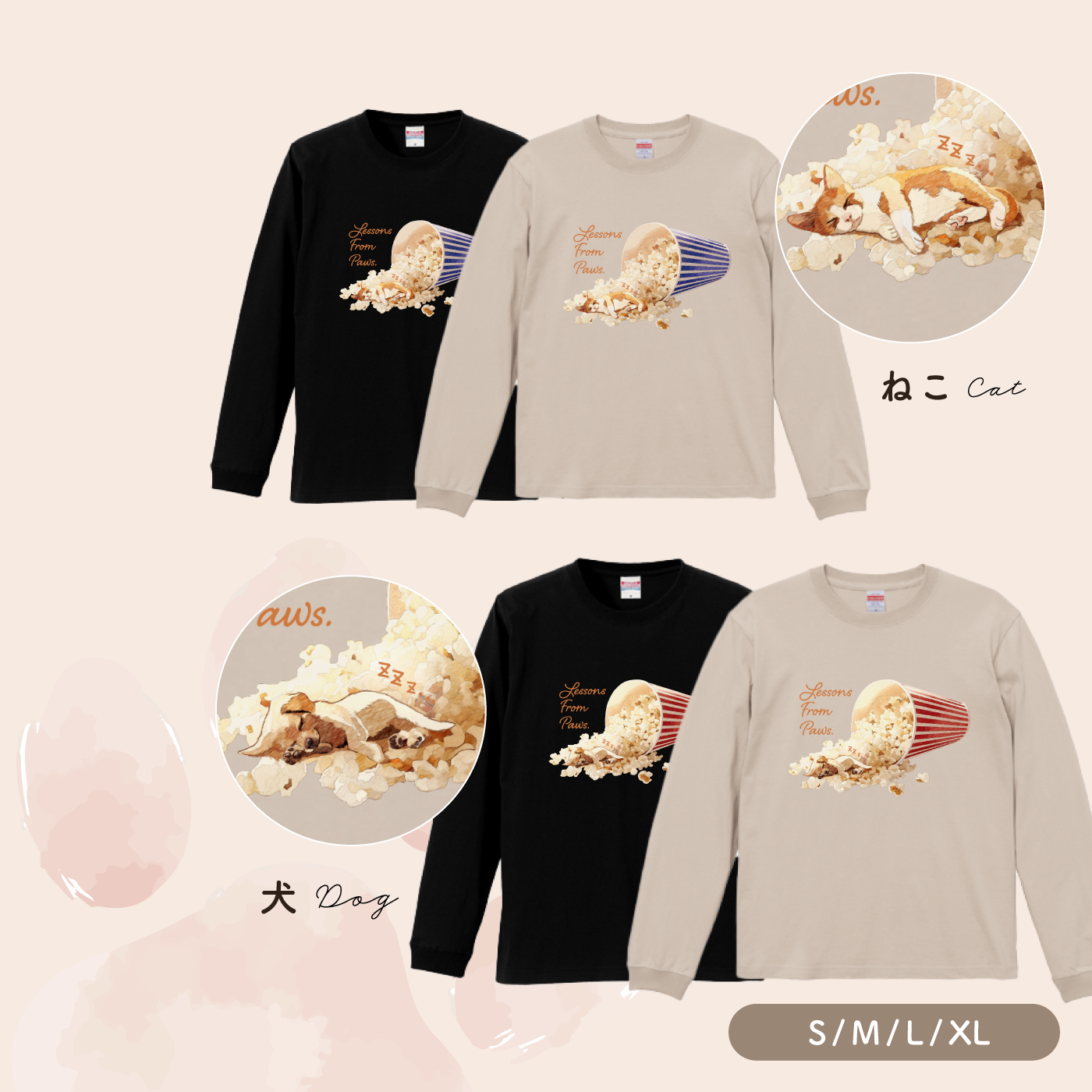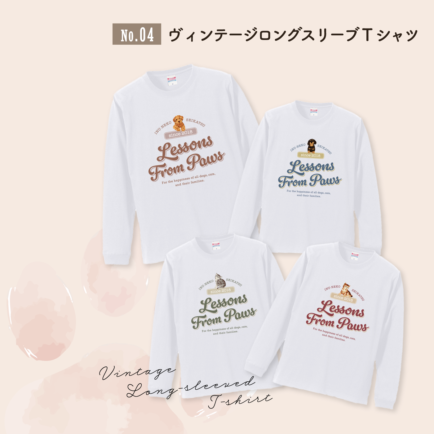 “Lessons From Paws”のメッセージとともに、日常にやさしい気持ちを届ける、秋冬にぴったりのロングスリーブTシャツです。