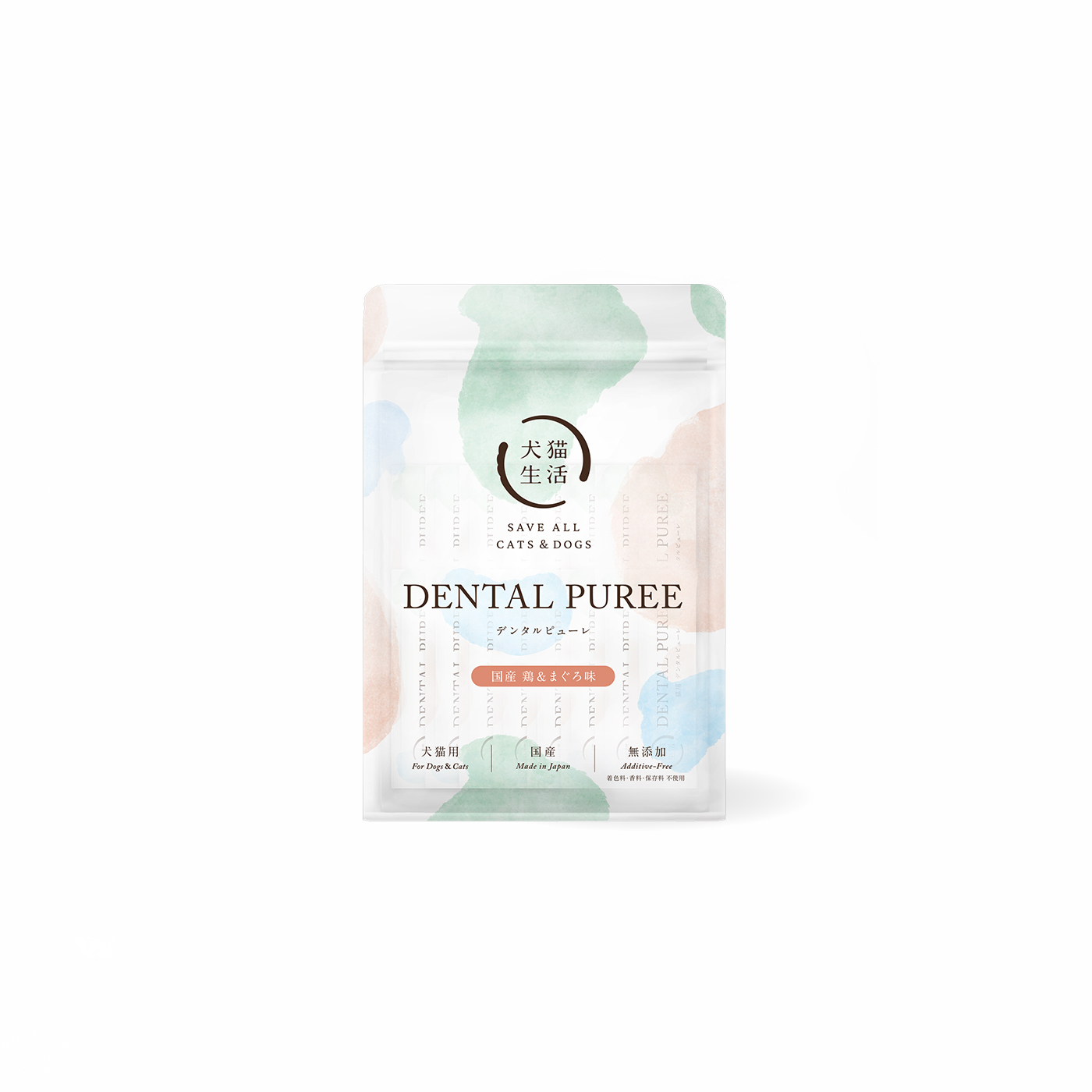 現在販売中の、獣医師と共同開発したふりかけ状サプリ「犬猫生活 デンタルふりかけ」をピューレにしました。 人向けの歯磨き市場でも注目を集める自然派原料のマスティック樹脂(通称:キリストの涙)を使用しています。 口内の汚れを取り除くリベチン含有卵黄粉末などがお口の健康に働きかけます。 ピューレ状のため、お好きなタイミングであげるだけの簡単習慣で愛犬も飼い主さまも続けやすいお口ケア商品です。 ※生後3か月未満の子犬にはあげないでください。